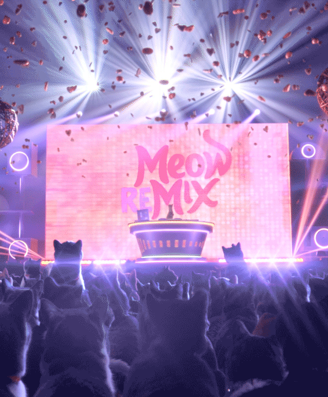 The Meow Mix Remix campaign envisions cat musical artists across a variety of genres, celebrating each genre's interpretation of the brand's iconic jingle. To launch their latest cat food, we created DJ HouseKäat, who steps onto the scene armed only with his trusty sampler and his favorite food: Meow Mix Tasty Layers, a remix of traditional cat food sure to make your cat ask for it by name.